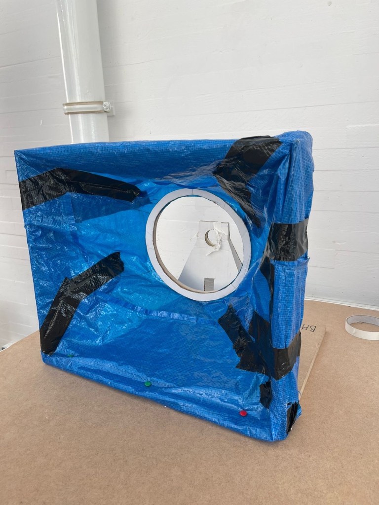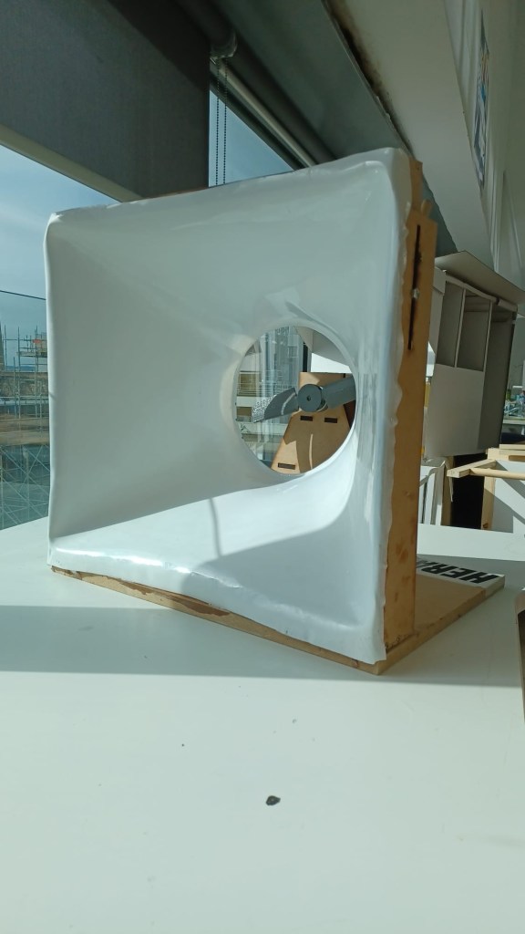 Using cheap material for the original mock up for the design we created our initial venturi model which we can and adapted until the power output would go any higher. From there we used CAD and 3D printing to further refine the windmill, testing the angles of the turbine blades as well as testing for the optimal number of blades. The final prototype was made using vacuum forming the venturi, laser cutting MDF to hold the motor and blades and 3D printing the blades.